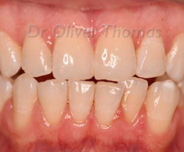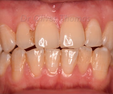 • A simple aesthetic improvement case involving conservative tooth whitening, air-polishing for stain removal and replacement of stained old white filling on upper incisor.